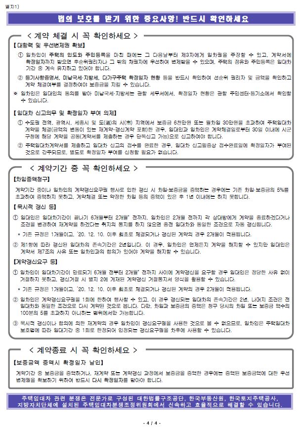 표준임대차계약서 서식 작성방법, 유의해야 할 사항에 대해 알아보았습니다. 많은 분들이 스스로 내 보증금을 지킬 수 있도록 계약서를 숙지하시고 꼼꼼히 분석하실 수 있길 바랍니다.